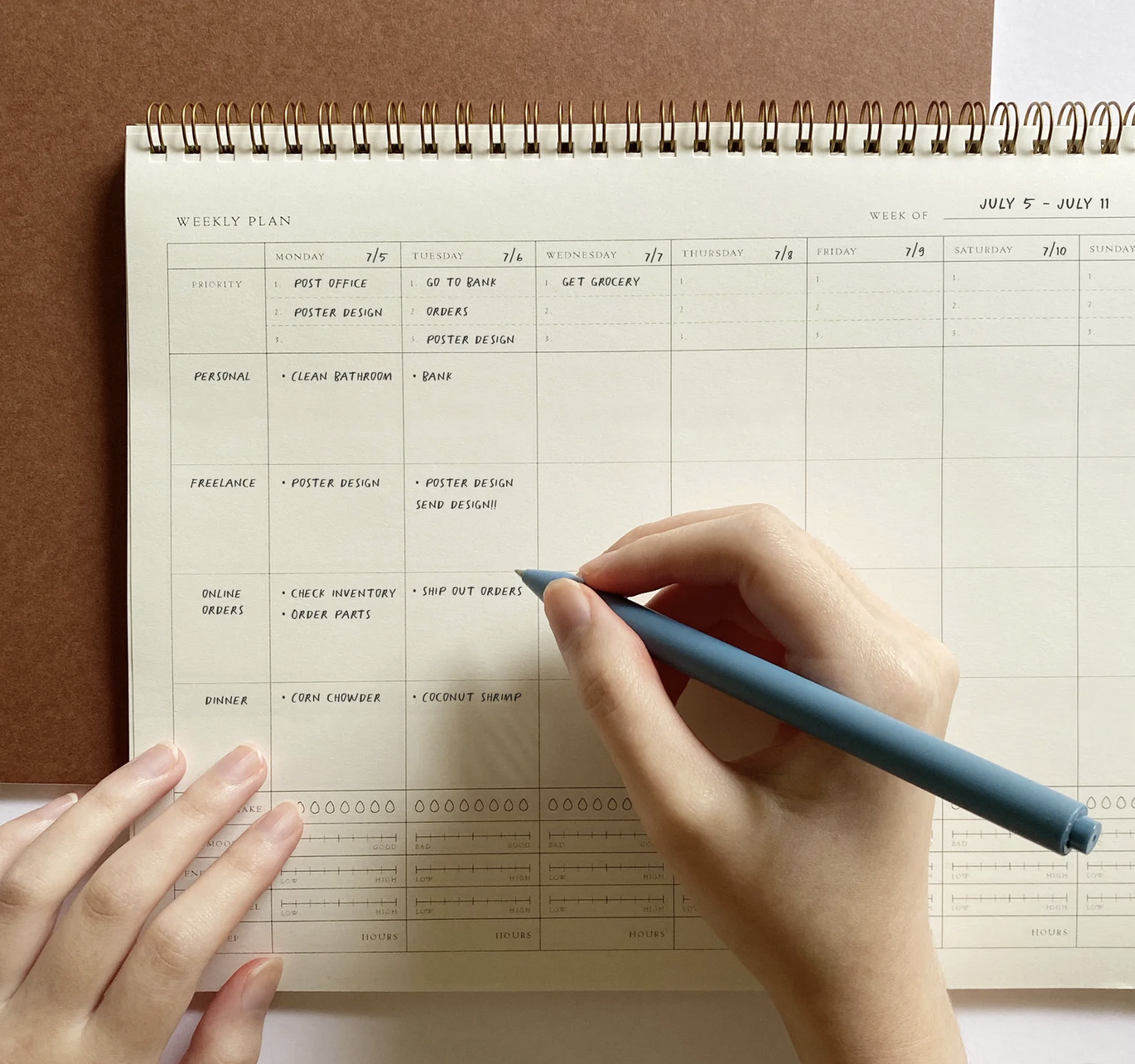 Decoy Lab's Weekly Planner ($22 + shipping) is what I tried next. I love how it allows you to group tasks by category, making it clear which areas you're putting the most effort into and which areas might be neglected. I also liked that the self-care trackers were integrated into the bottom of each day instead of in a separate section, making it easier for me to remember to use them.